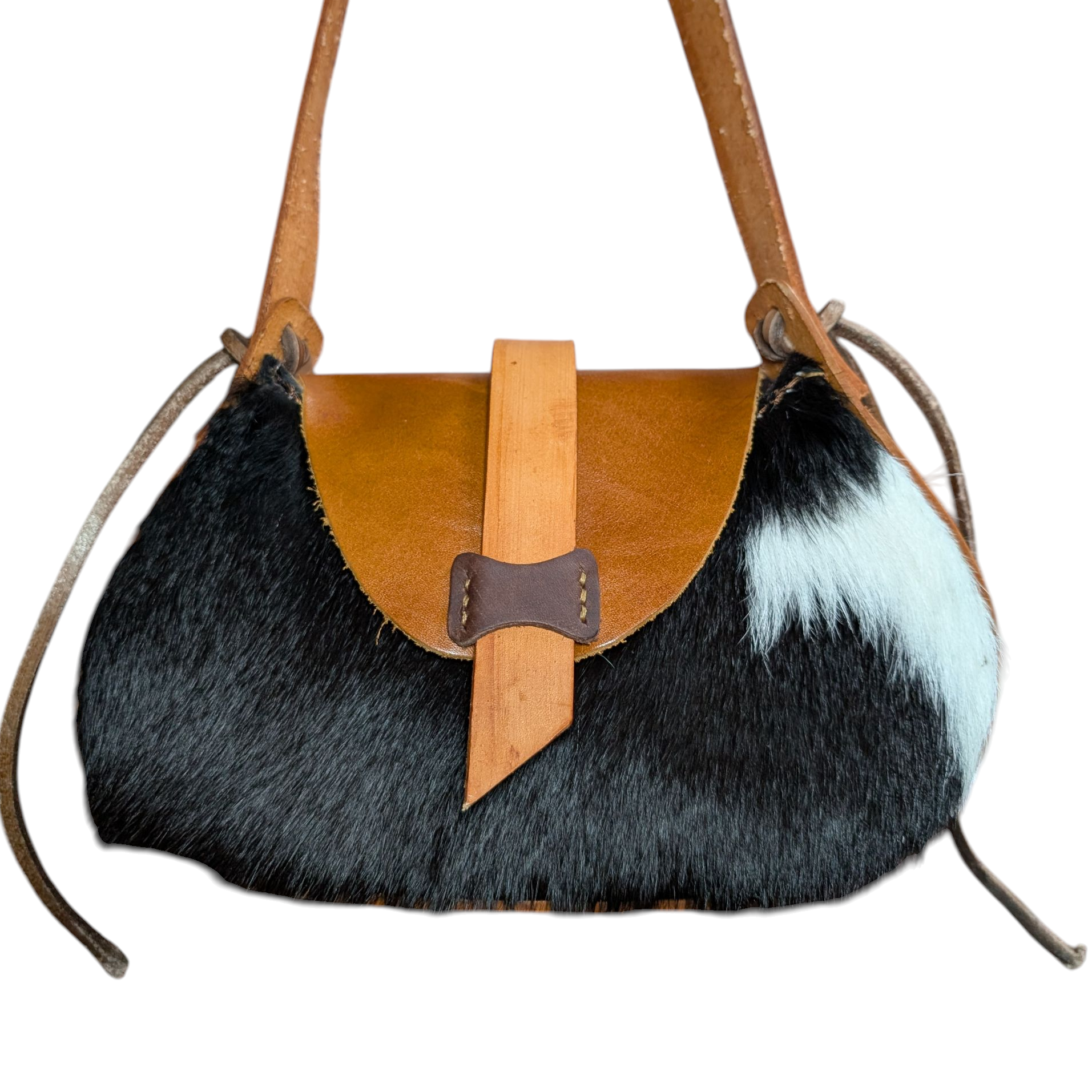 Handmade Leather Bag (0021) - Black & Tan Leather w/ Cowhide