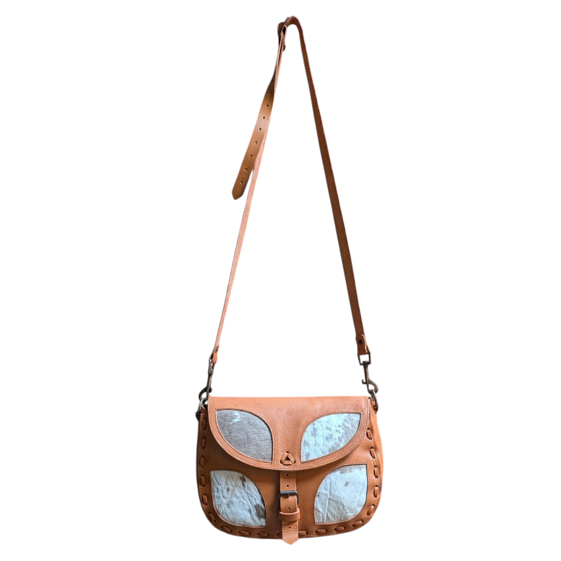 Handmade Leather Bag (0014) - Brown Leather w/ Cowhide