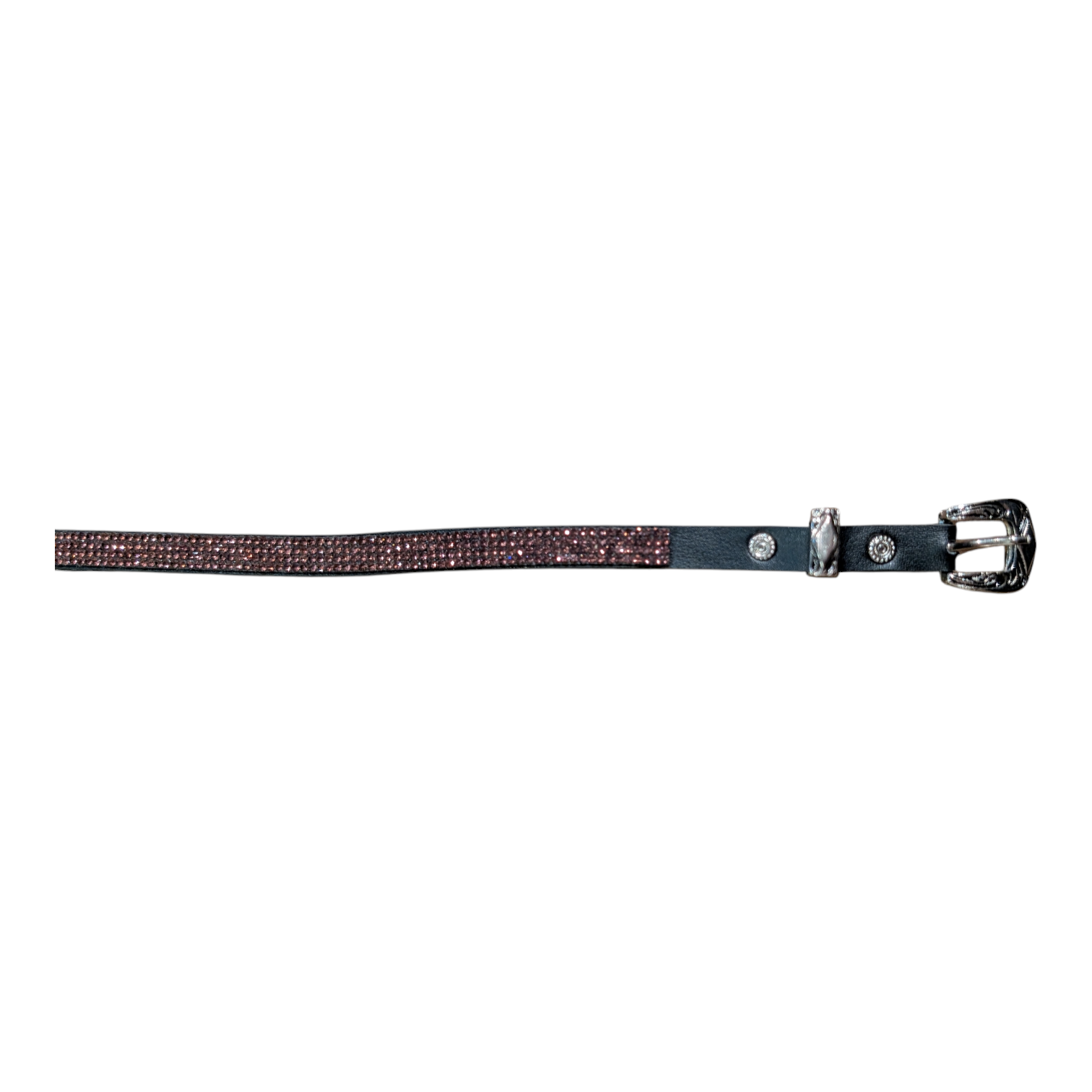 Elevate your cowboy hat with this striking western hat band, designed to add personality and sparkle to any look. Made with a durable black leather base, featuring a decorative western-style buckle and keeper for an adjustable, secure fit.