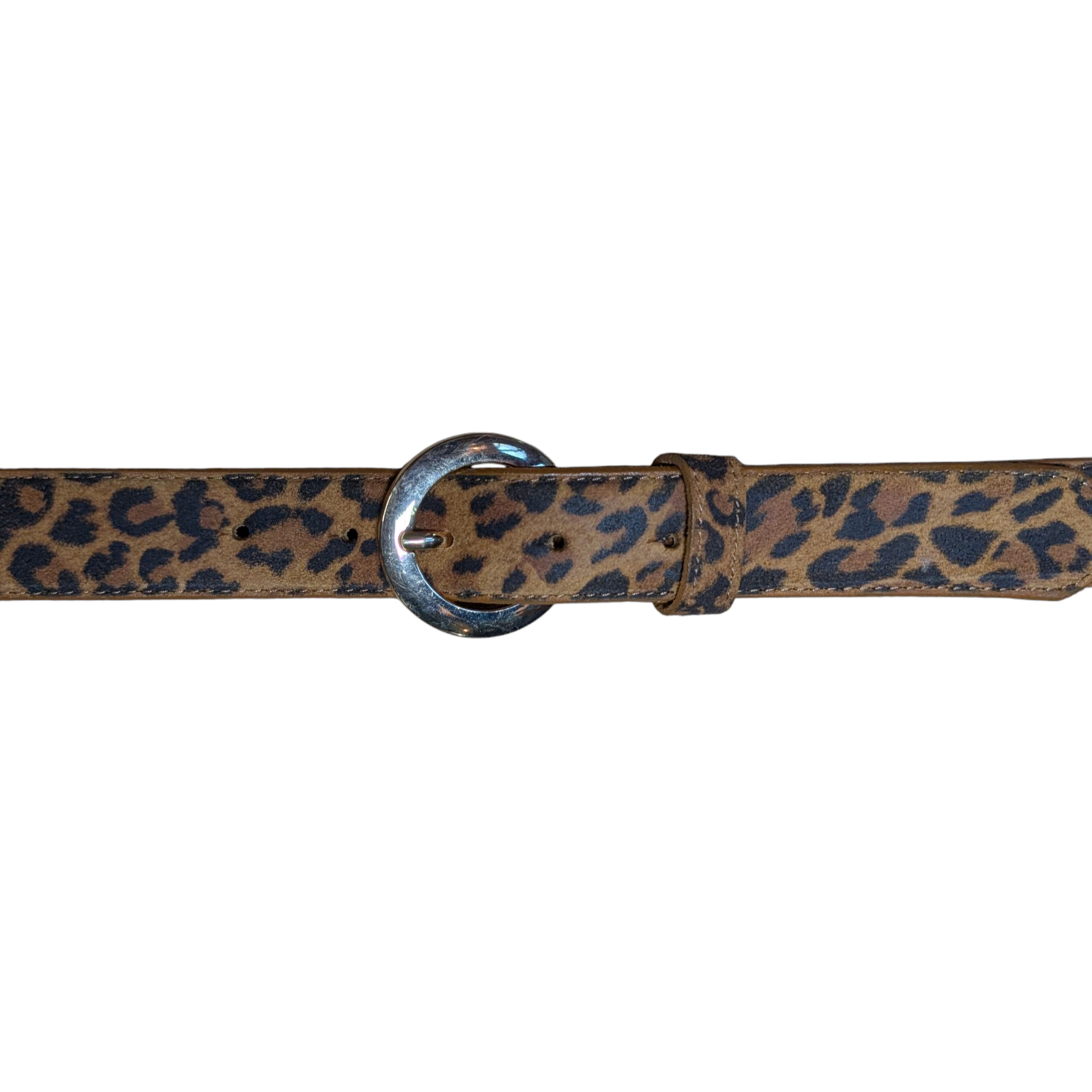 Western Leather Belt (0017) - Leopard Print w/ Circular Gold Buckle