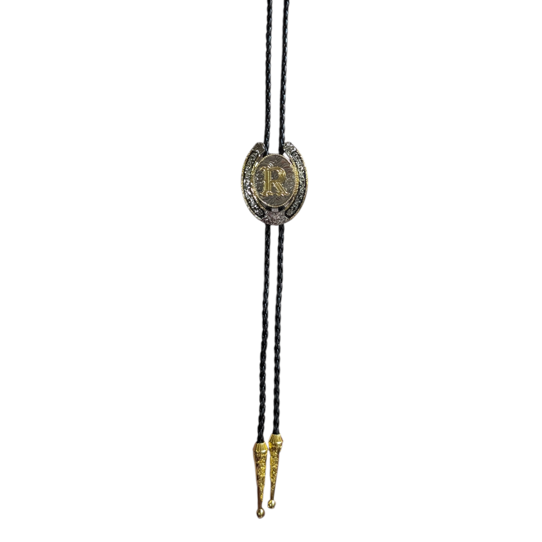 Western Bolo Tie (0043) - Silver & Gold Letter (R)