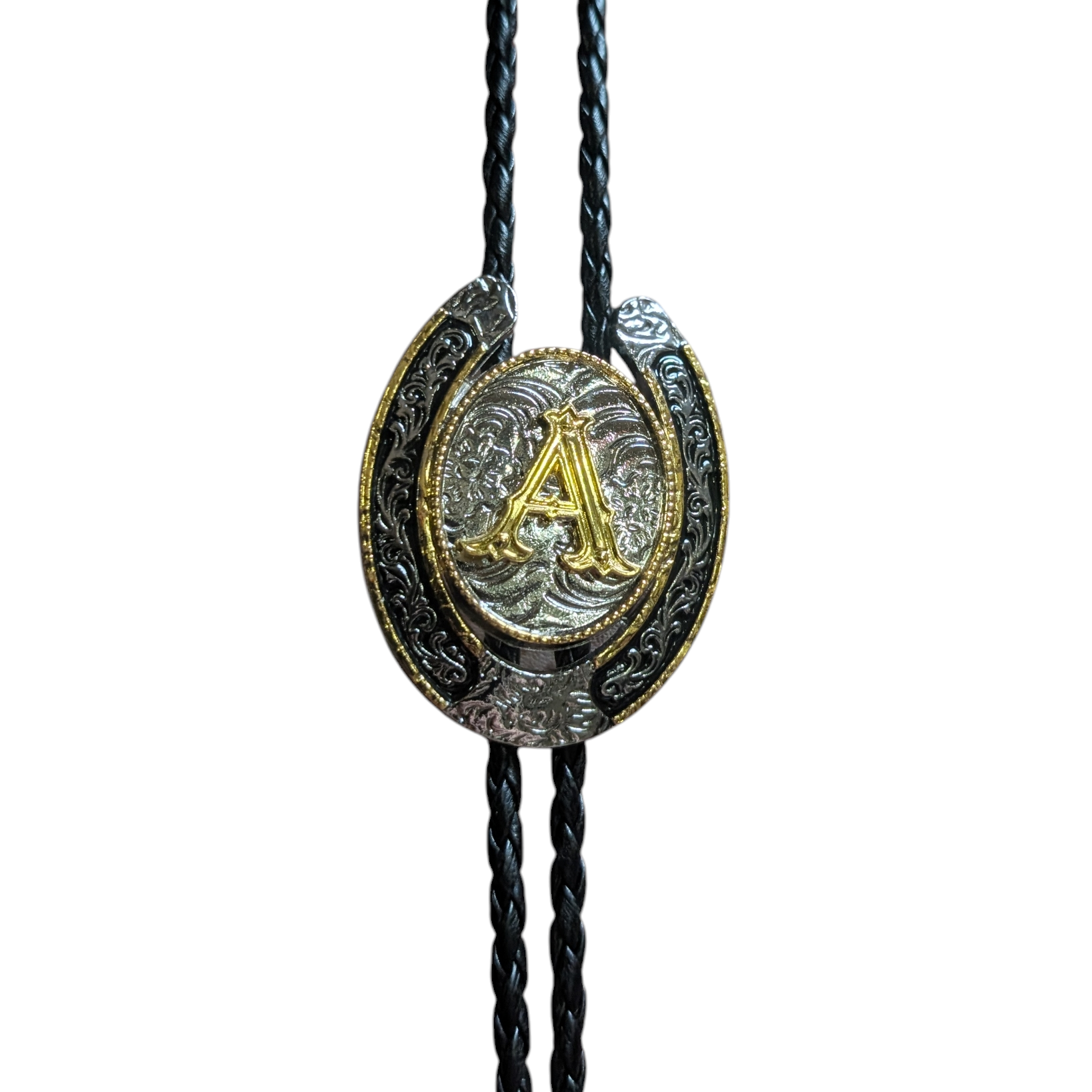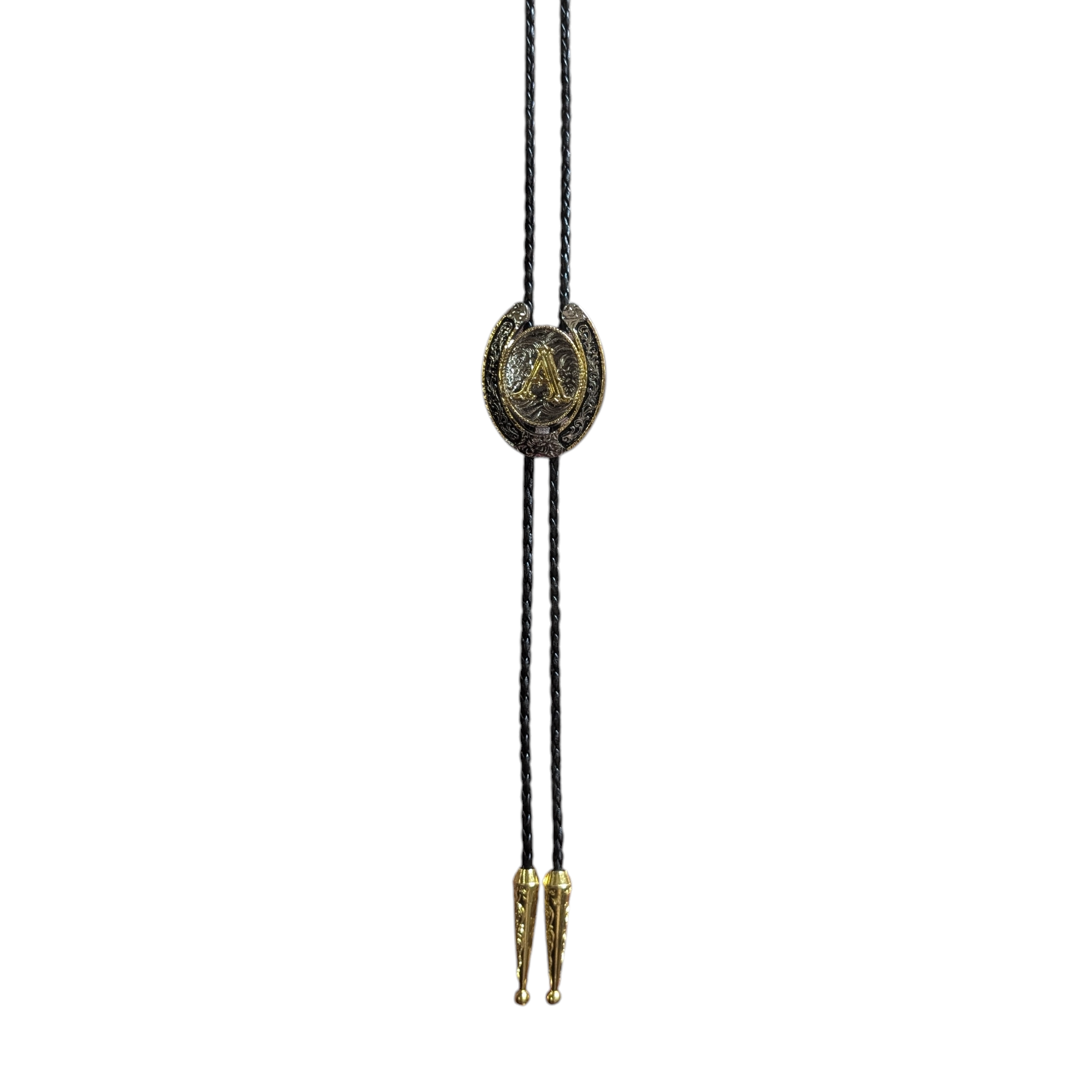 Western Bolo Tie (0049) - Gold & Silver Letter (A)