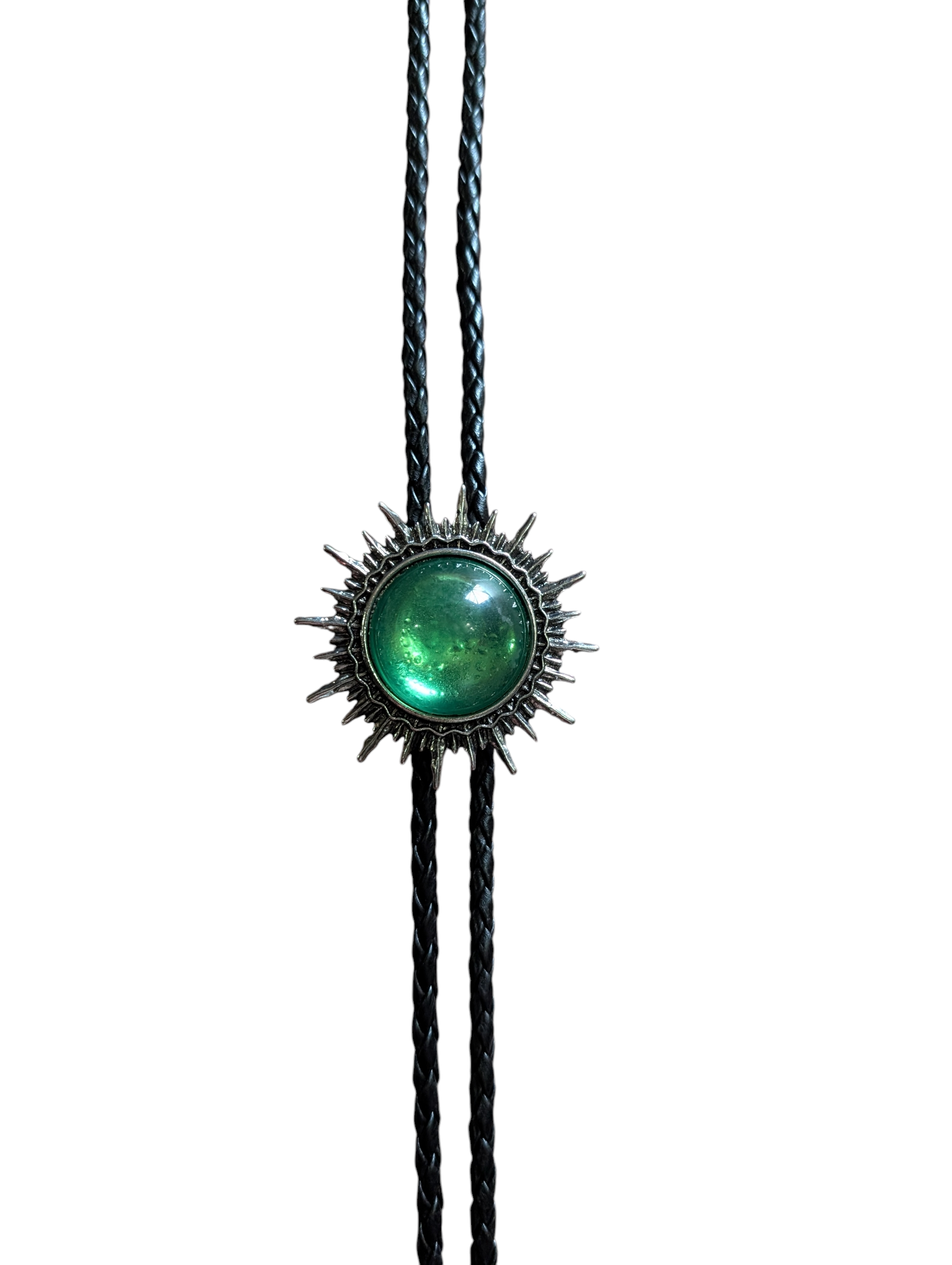 Western Bolo Tie (0068) - Silver Sun w/ Green Stone