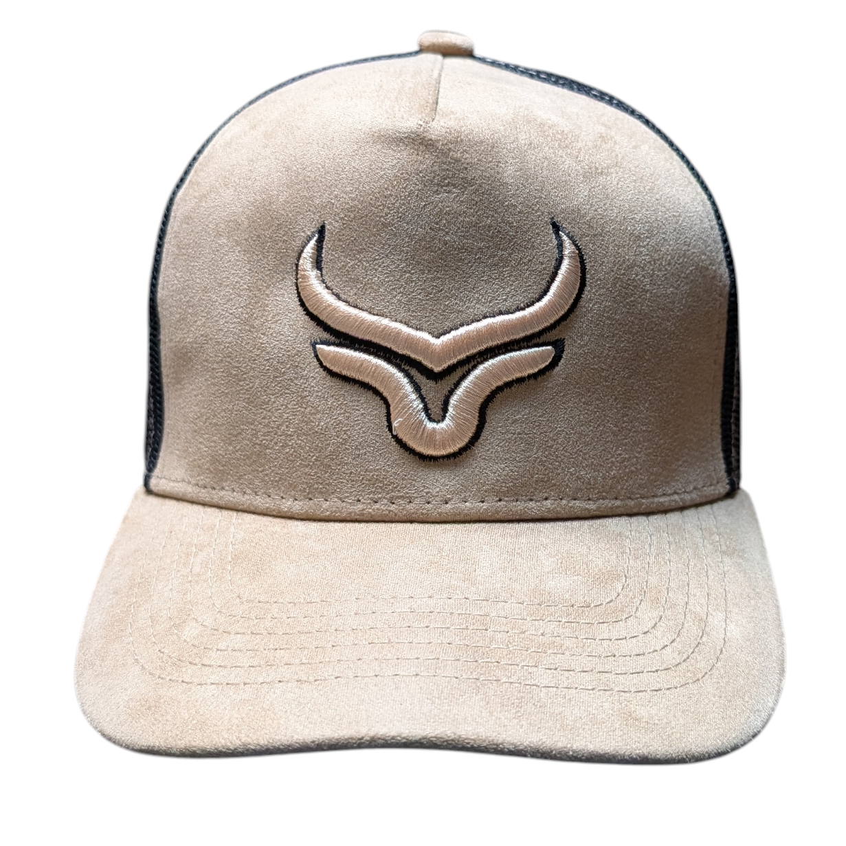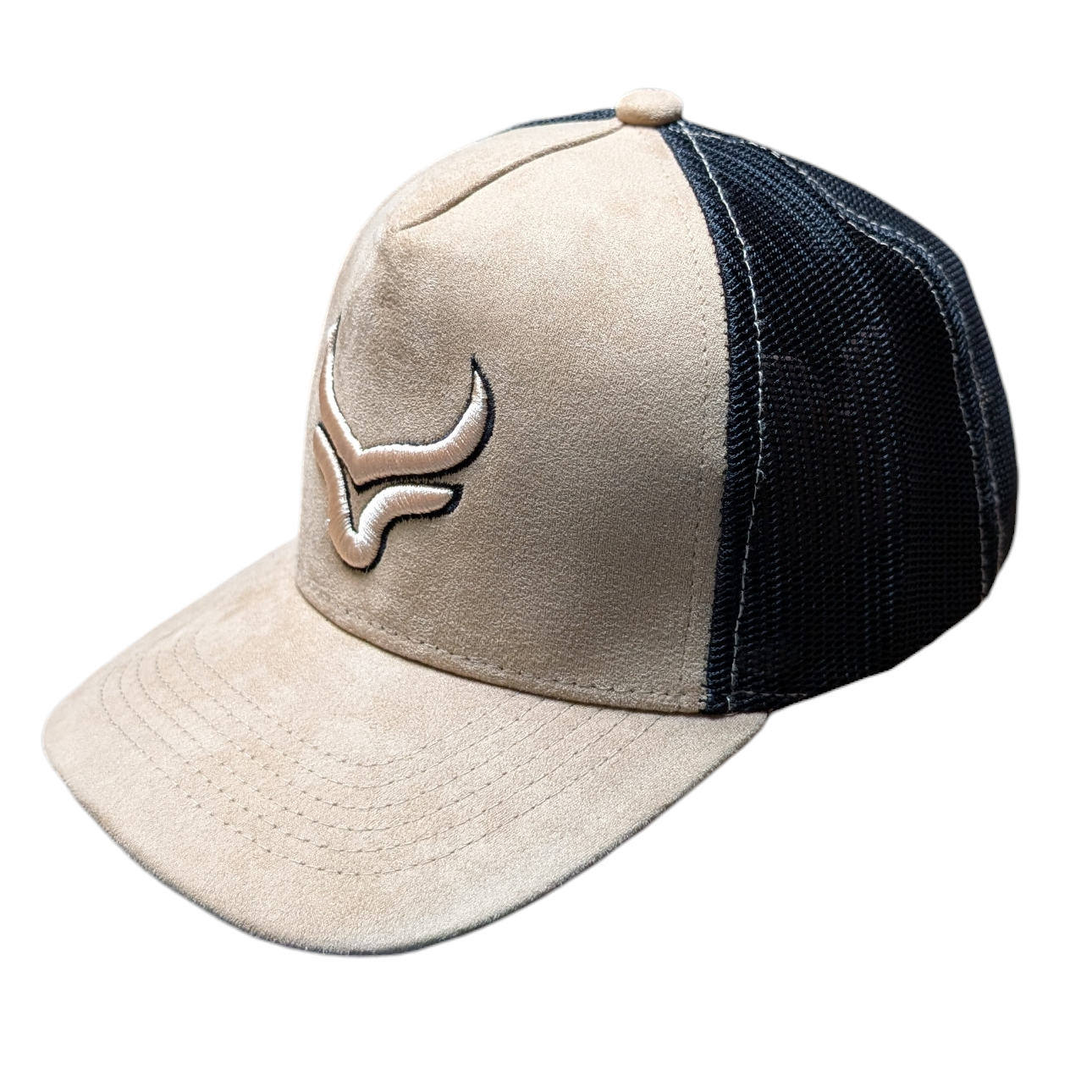 Western Cap (0002) - Beige & Black Mesh w/ Longhorn Stitching