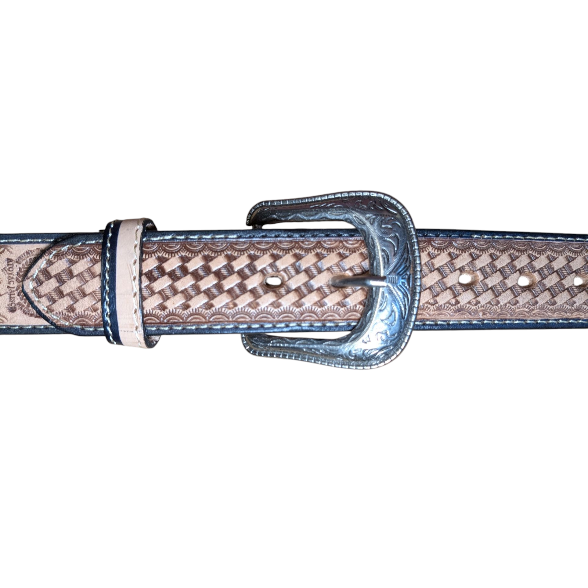 Crafted from genuine leather, this beige woven western belt offers a timeless style that only gets better with age