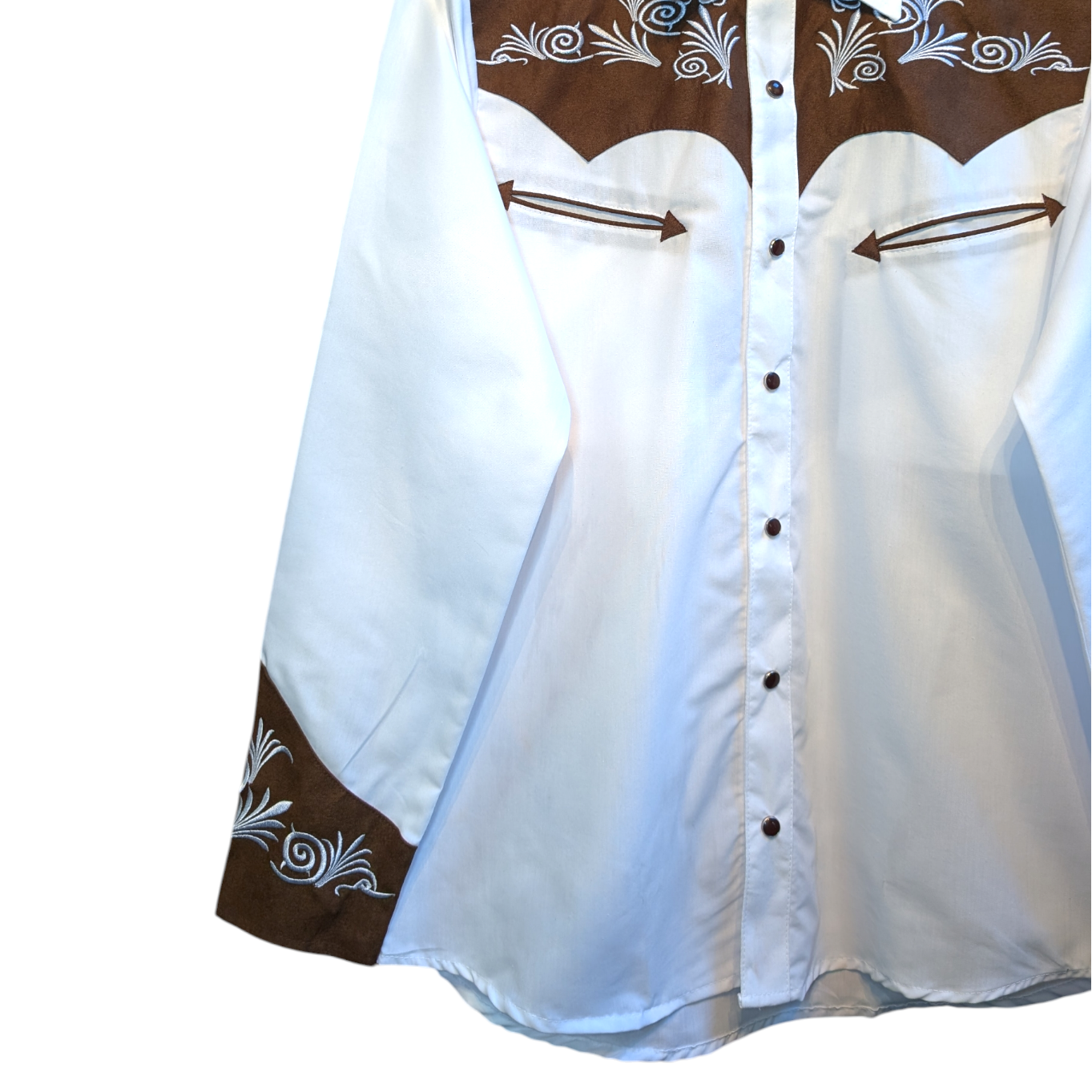 Western Shirt (0019) - White & Brown w/ White Embroidery
